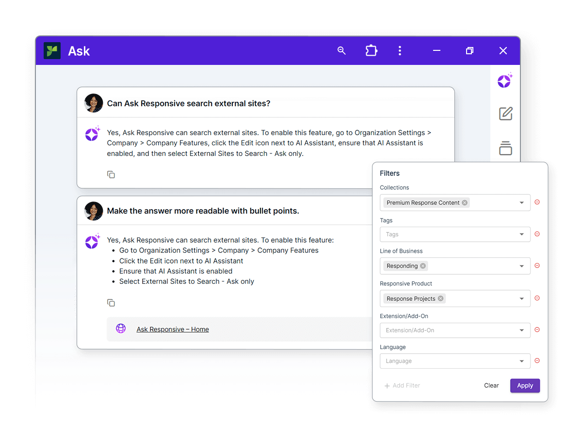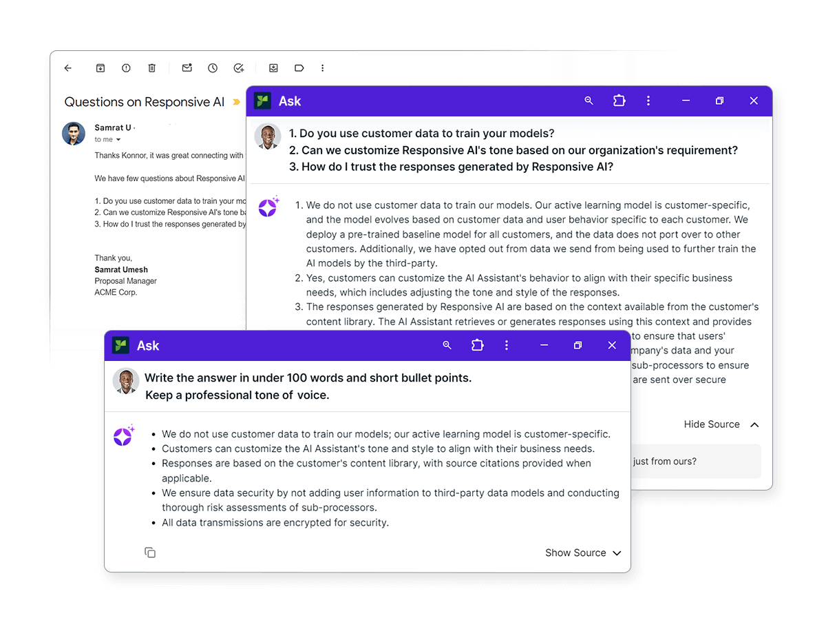 Advance sales cycles by responding immediately to information requests — with trusted source citations to back it up.