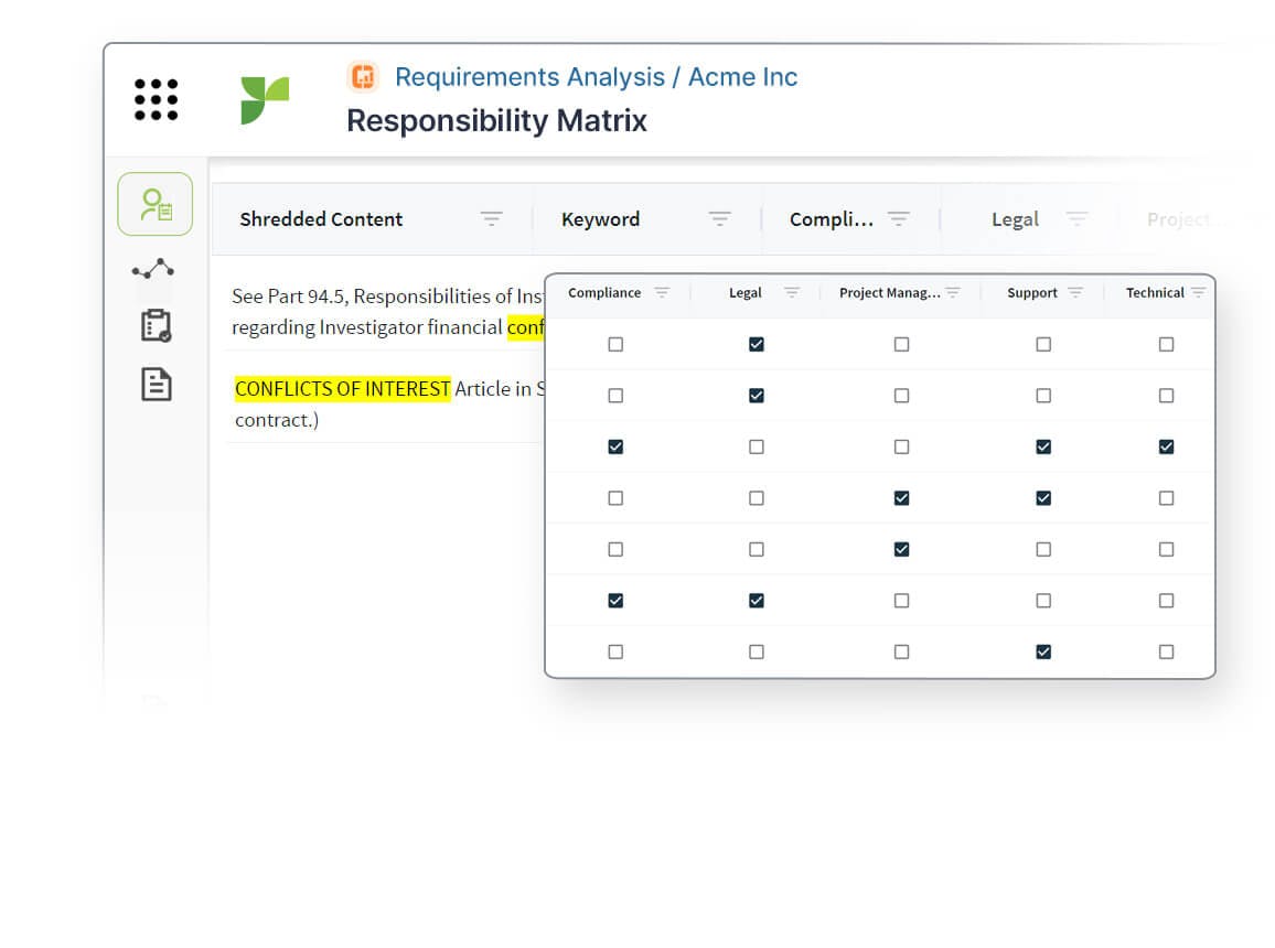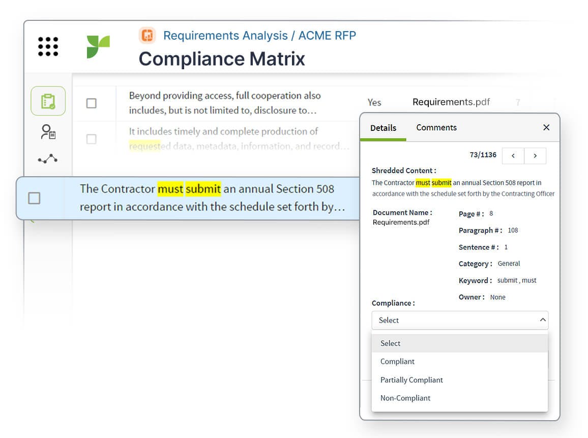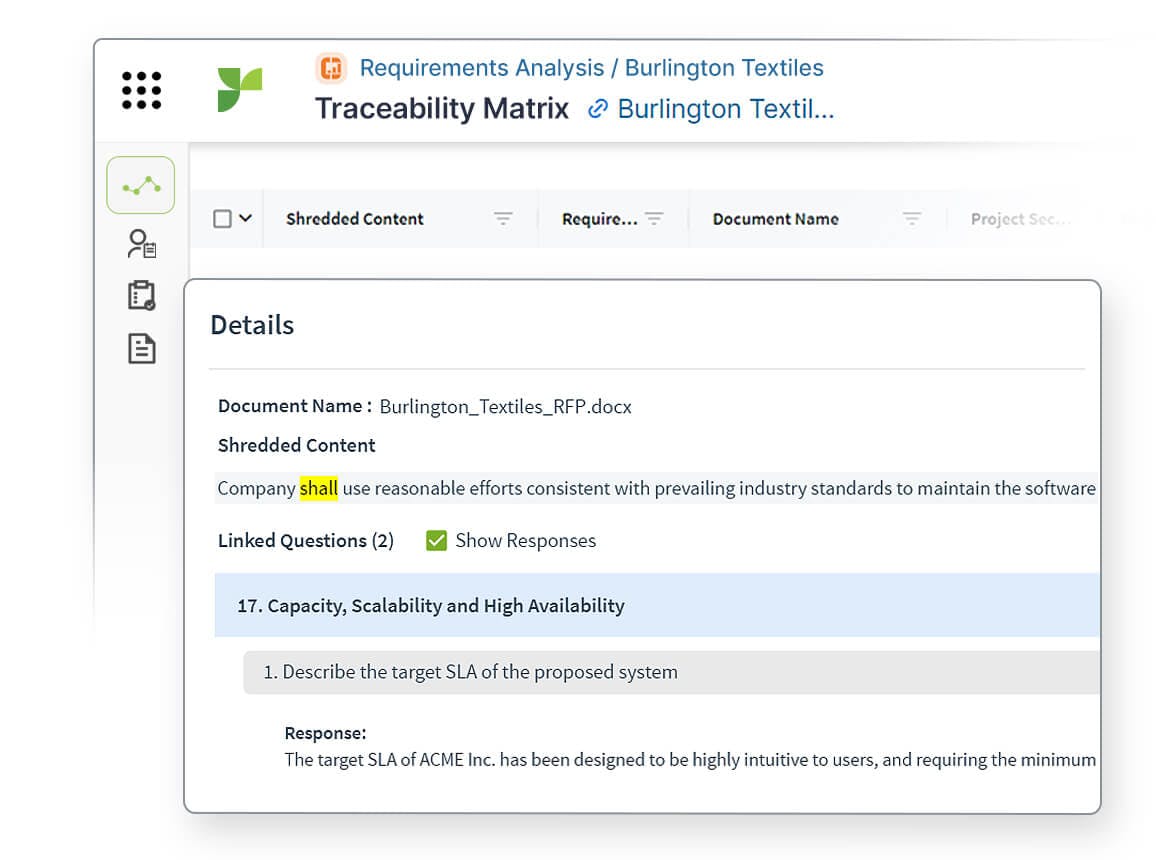 Use Responsive AI to extract and sort key requirements into tables to analyze fit, plan responses and ensure compliance.