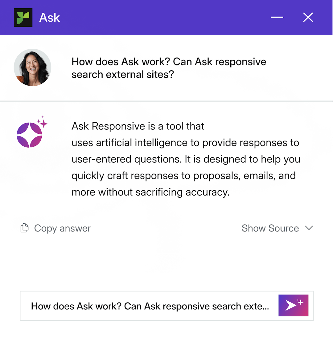 Reinforce trust and confidence by enabling teams to deliver accurate, high-quality responses and proposals fueled by AI and verified by humans.
